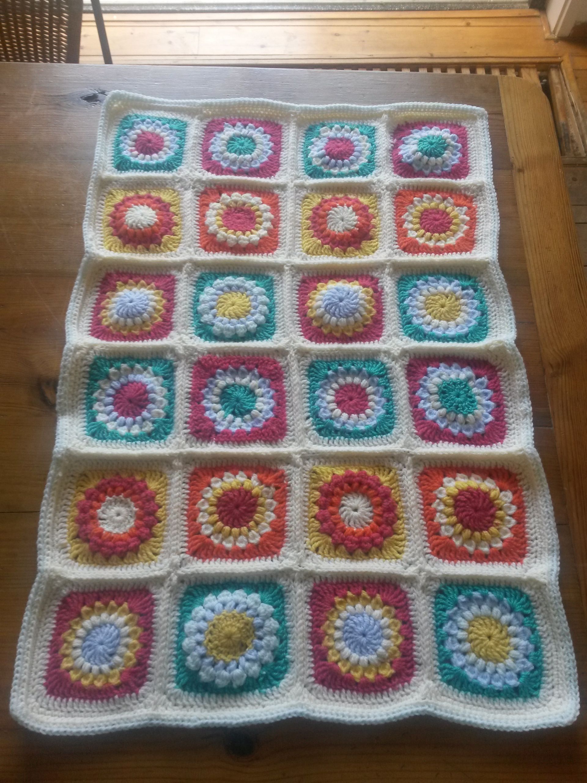 Babydeken!! Gemaakt van Zeeman Soft. De vierkantjes zijn heel leuk om te haken, maar aan elkaar zetten en draadjes wegwerken, aaaaaaah! Maar dan heb je ook wat 🙂